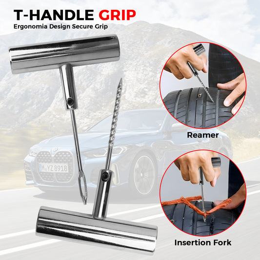 46 Pcs Professional Tire Repair Kit,Heavy-Duty Universal Plug & Patch Kit for Tubeless Tires, with T-Handle Tool for Car, Truck, Motorcycle, RV and More