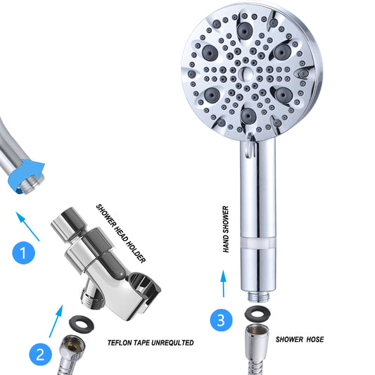 Lafati Handheld Shower Head Set - 9 Modes, 60" Hose, Easy Install - Detachable Rain Shower with Anti-Clog Nozzles and Filter Replacement for Full Body Coverage