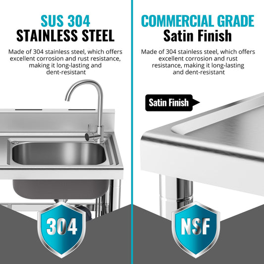 Lafati 304 SUS Stainless Steel Utility Sink - 47-Inch Free Standing Single Bowl Sink with Cold & Hot Water Faucet and Undershelf