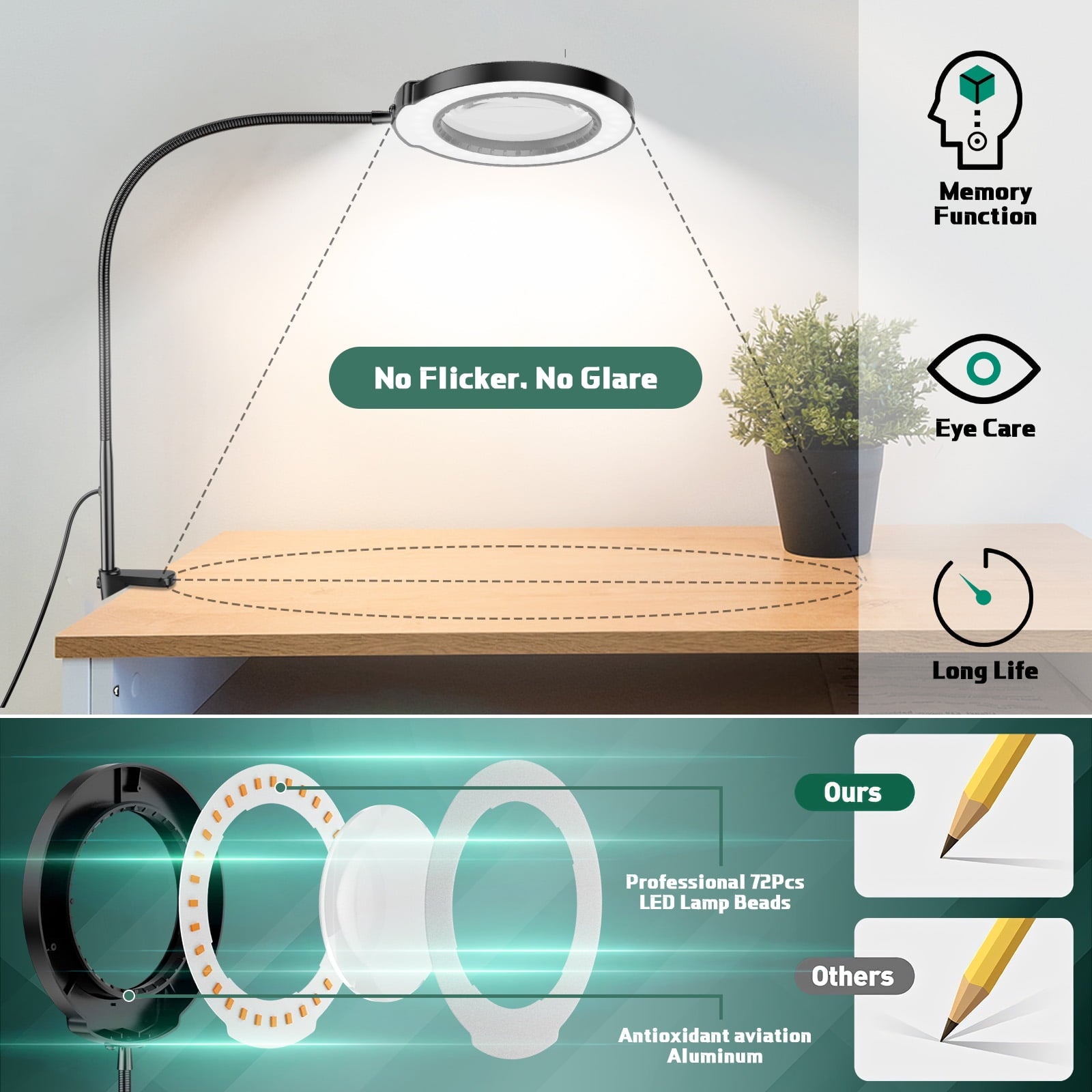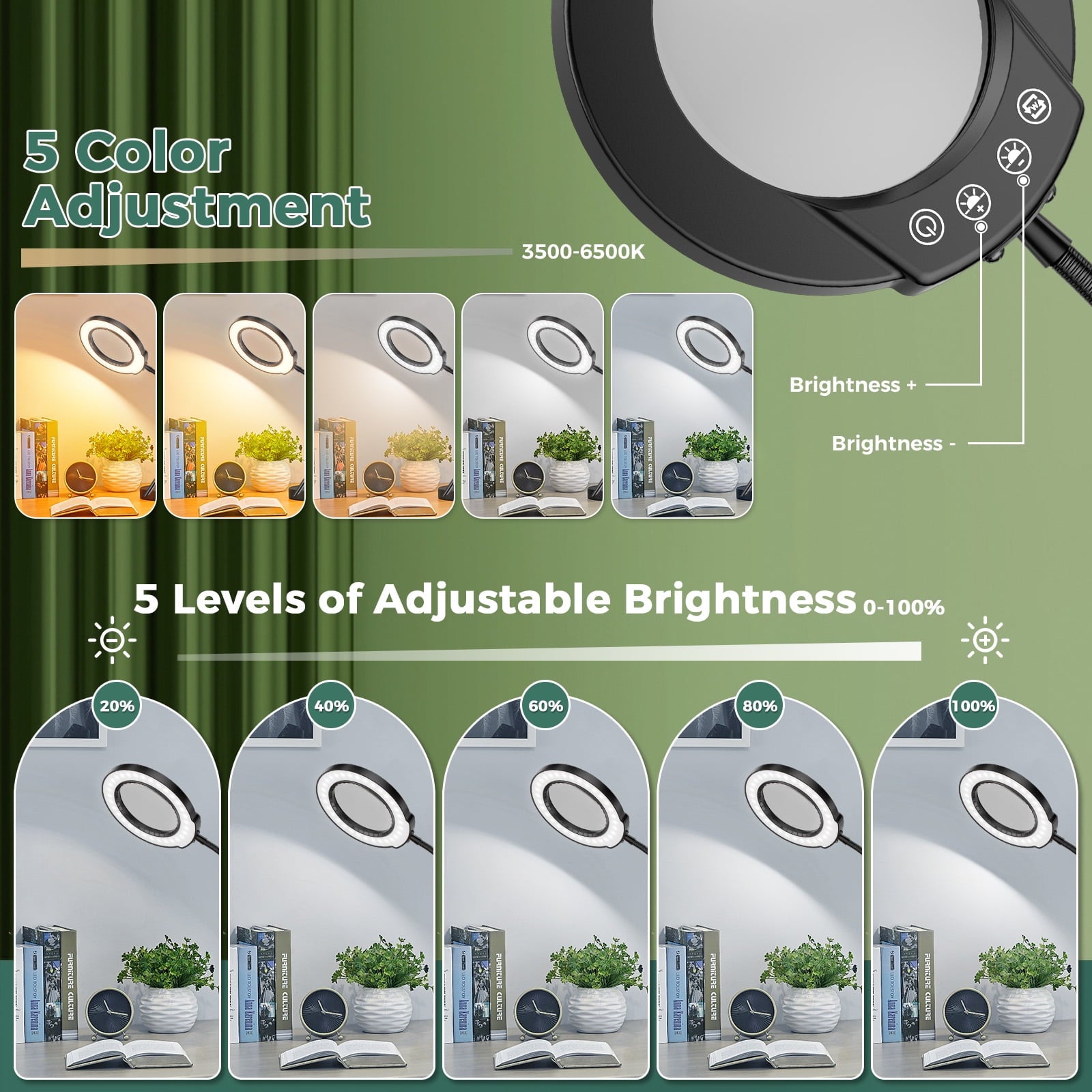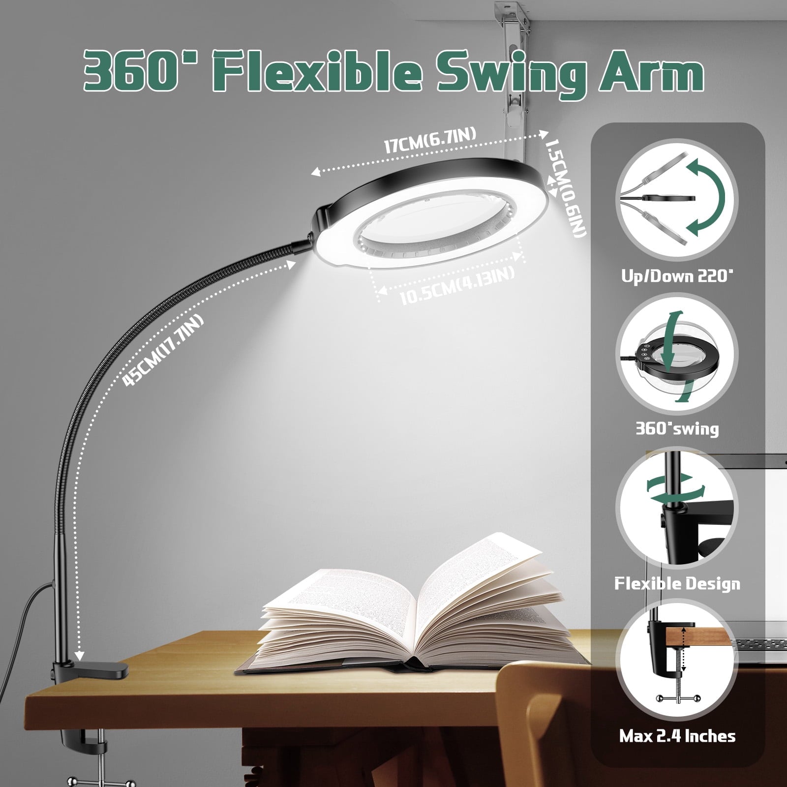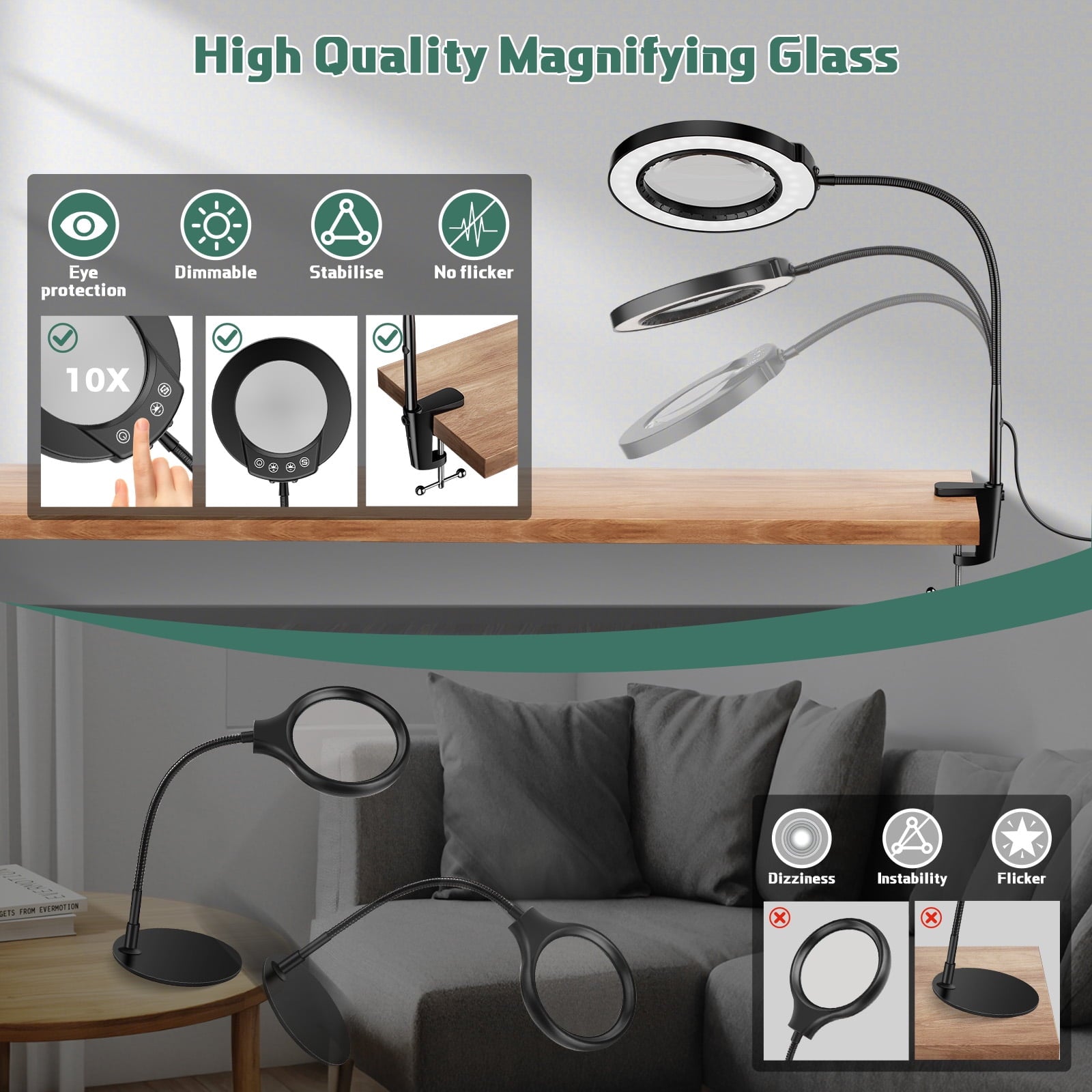 10X Magnifying Glass Lamp with Light and Stand, 5Color Modes & 5 Brightness Levels, Adjustable Swivel Arm for Close Work, Reading, Crafts, Repairing