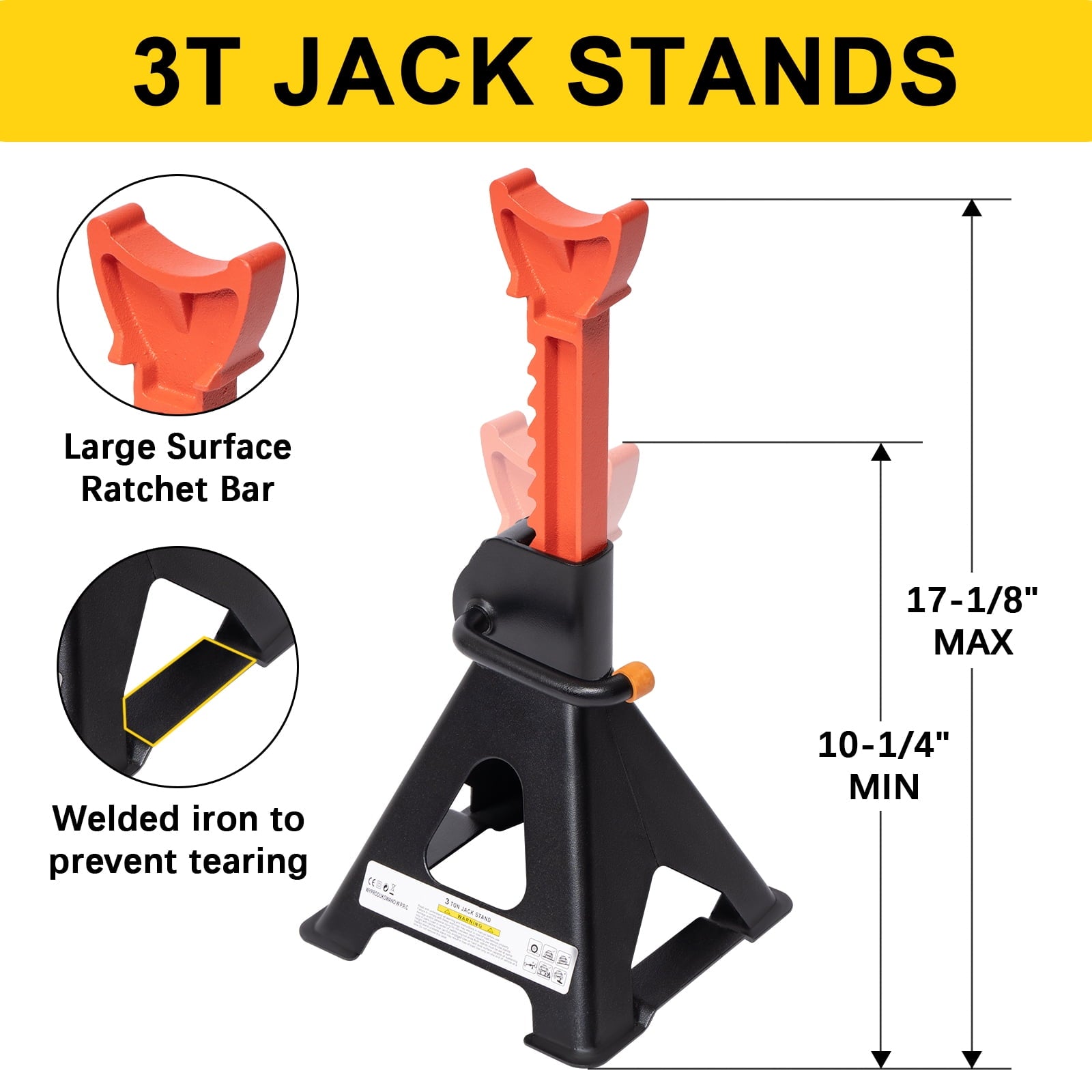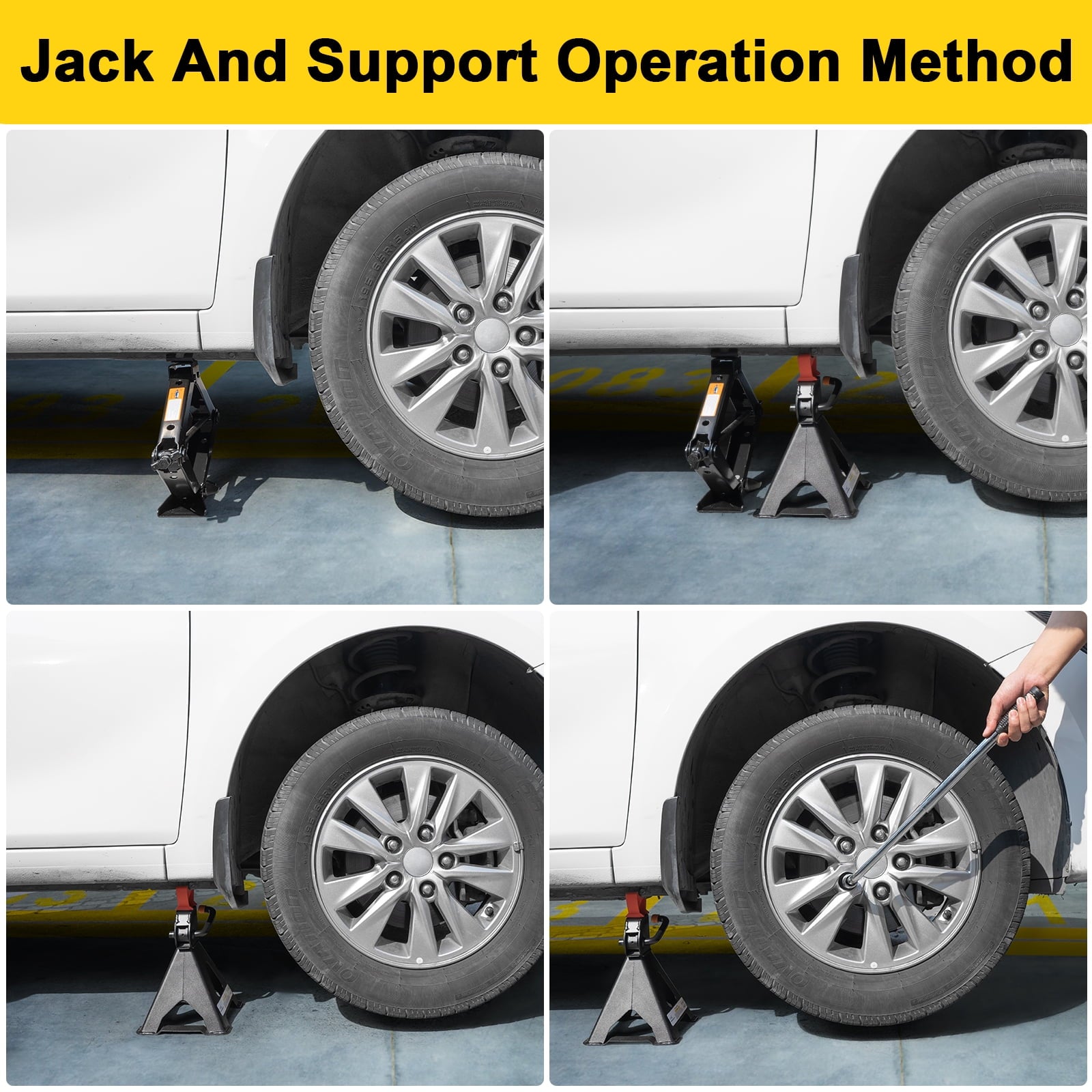 This upgraded emergency kit pairs a 3-ton scissor jack with two 3-ton jack stands, providing unmatched safety for tire changes or vehicle maintenance. Lift your car with the scissor jack (4.33"–17.71" range), then secure it on the Lafati jack stands (10.25"–17.13" height) for stable, hands-free support.