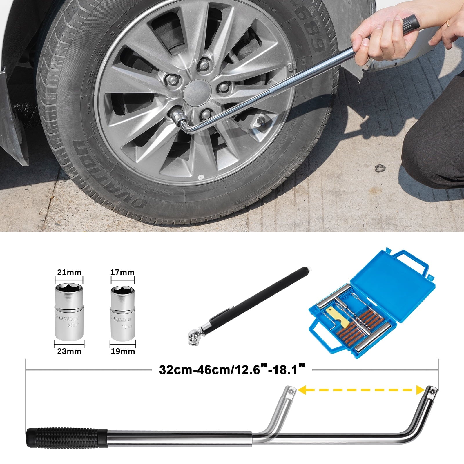 - Dual-head lug wrench (17/19mm + 21/23mm)