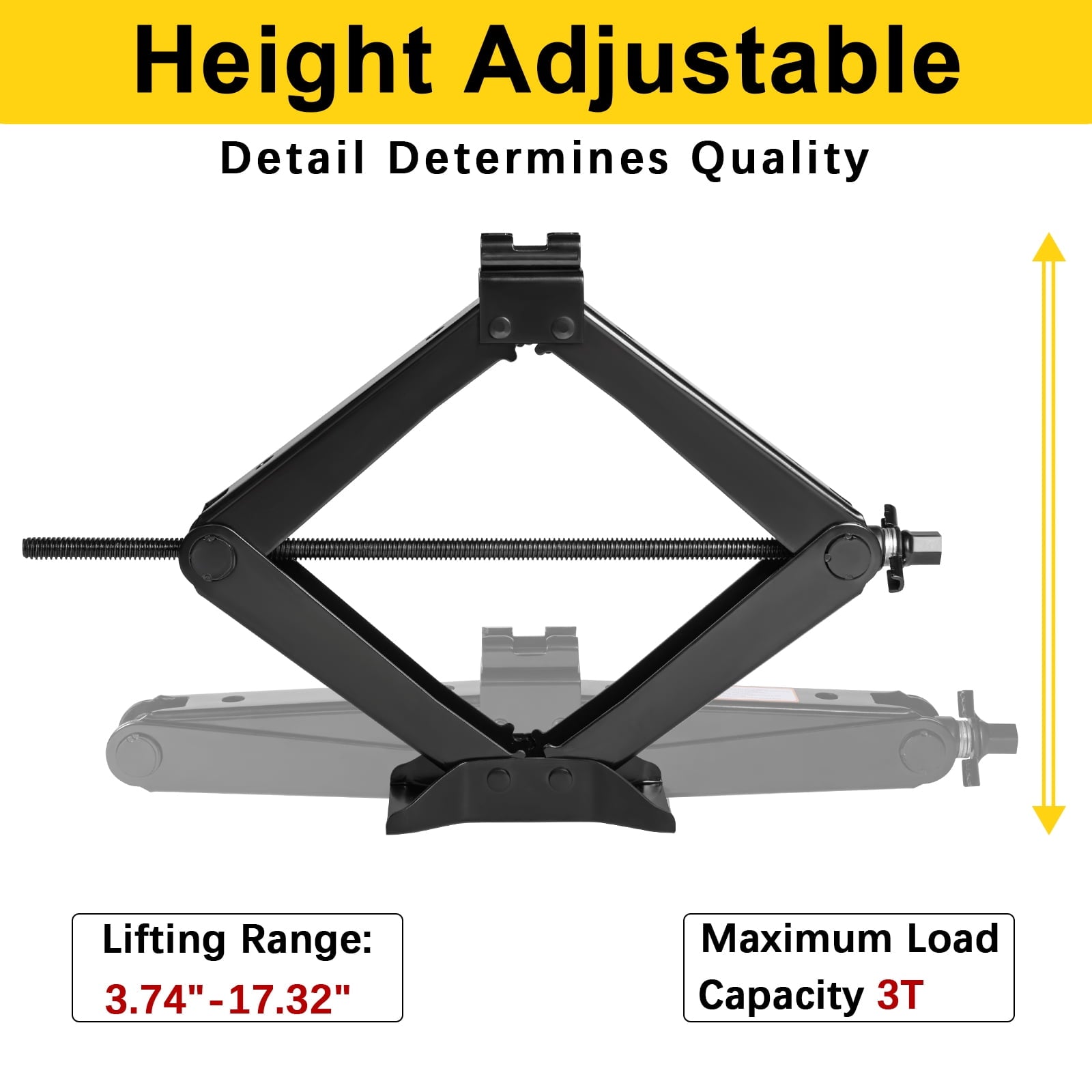 3 Ton Car Jack & Jack Stands Kit – Scissor Jack, 3T Jack Stands (2 Pack), Lug Wrench, Tire Repair Tools – Car Kit for Cars, SUVs