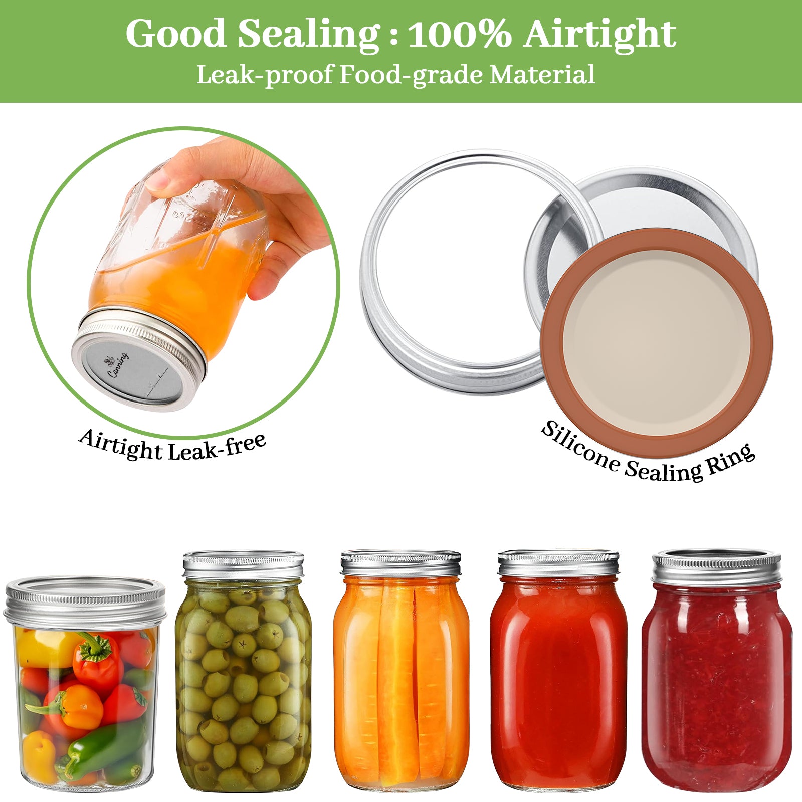 - 🍒 100% Fit & Airtight for regular mouth mason jars for canning food, jams, fruits, etc.