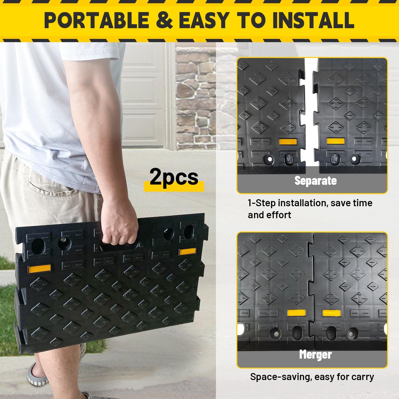 4" High 2 PCS Driveway Curb Ramps,Rubber Curb Ramps for Sidewalk Lawn Mower Cars Wheelchairs Pet Mobility,Load Capacity 6600 lbs