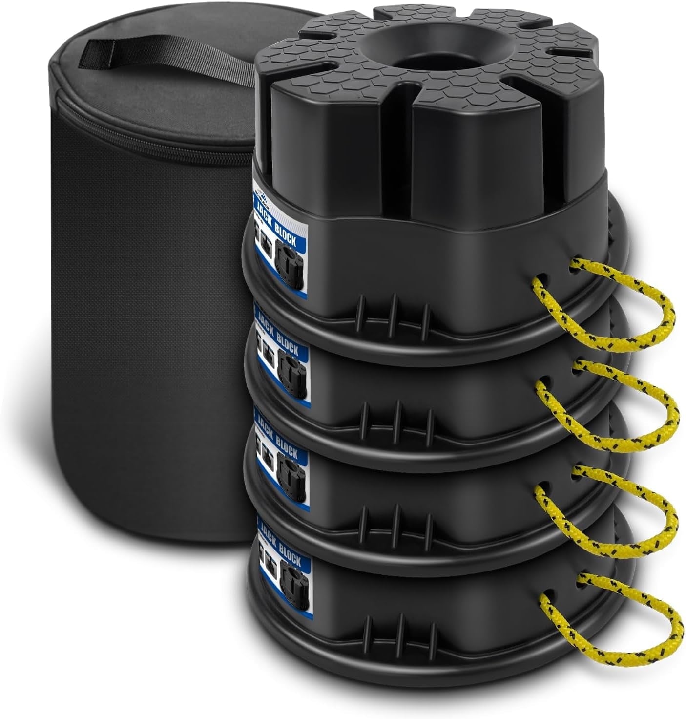 - The Aiqeek Trailer Jack Block is designed for a straightforward and secure setup. They are tool-free to install, providing a stable base for your RV in minutes, making them an essential part of your camping gear.