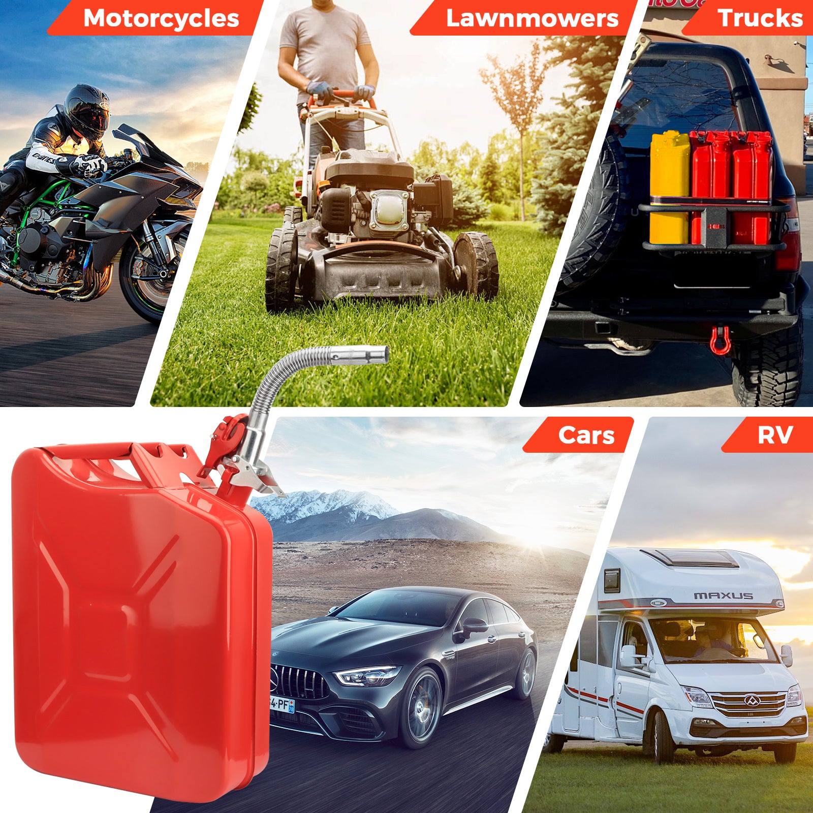 5 Gallon 20L Metal Gas Tank Can (US Stardard) Gas Can Power Emergency Backup Tank with Flexible Spout Red