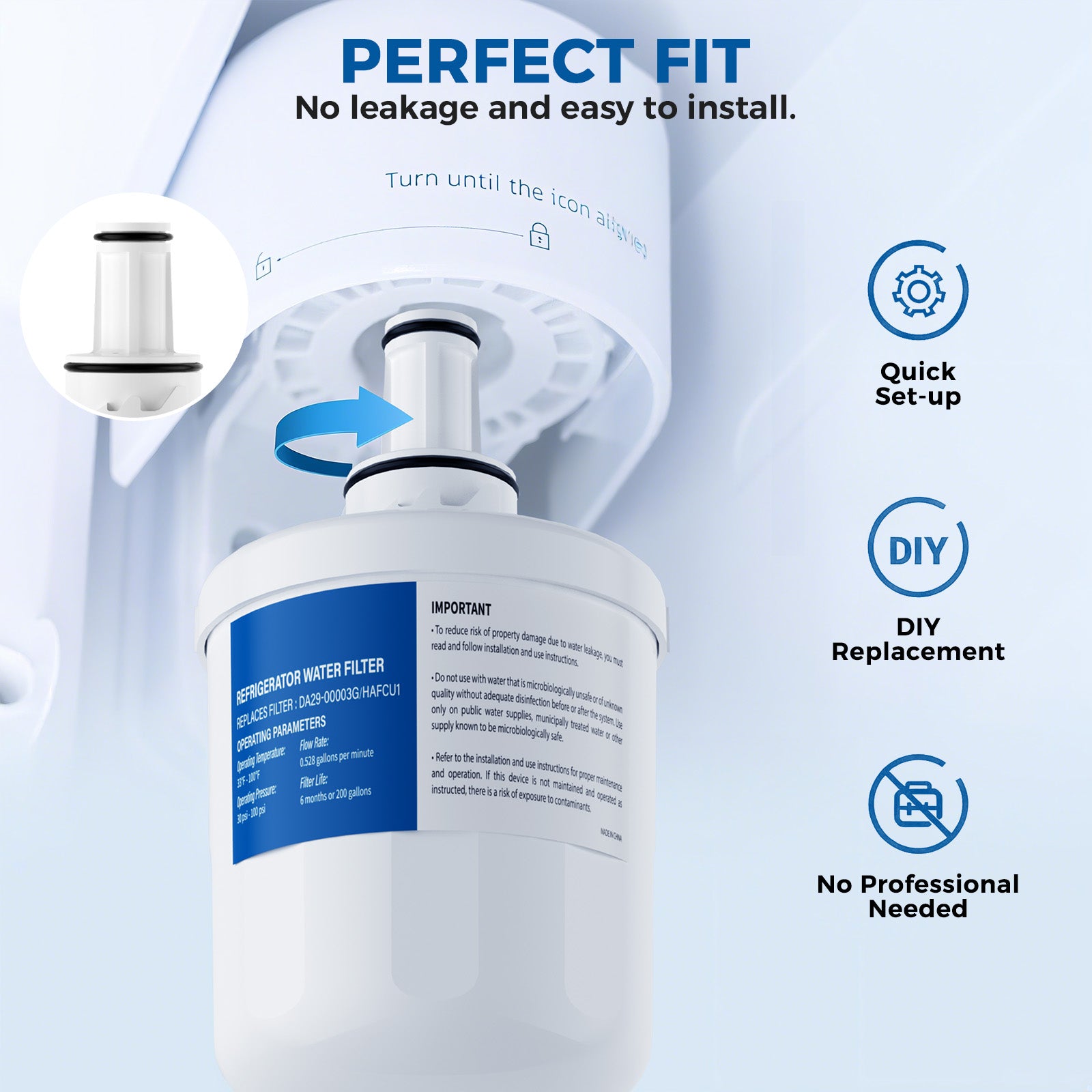 Aiqeek 3-Pack Refrigerator Water Filter NSF 42 Certified,Compatible with Aqua-Pure Plus/DA29-00003G/HAFCU1, 0.5 GPM Fast Flow