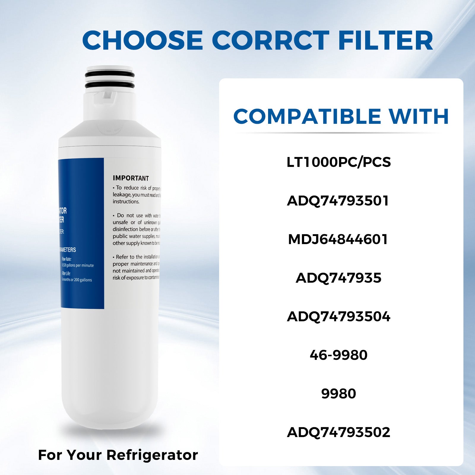Aiqeek LT1000PC Refrigerator Water Filter 3-Pack NSF 42 Certified,Compatible with LG LT1000PC/PCS, MDJ64844601, ADQ747935/04