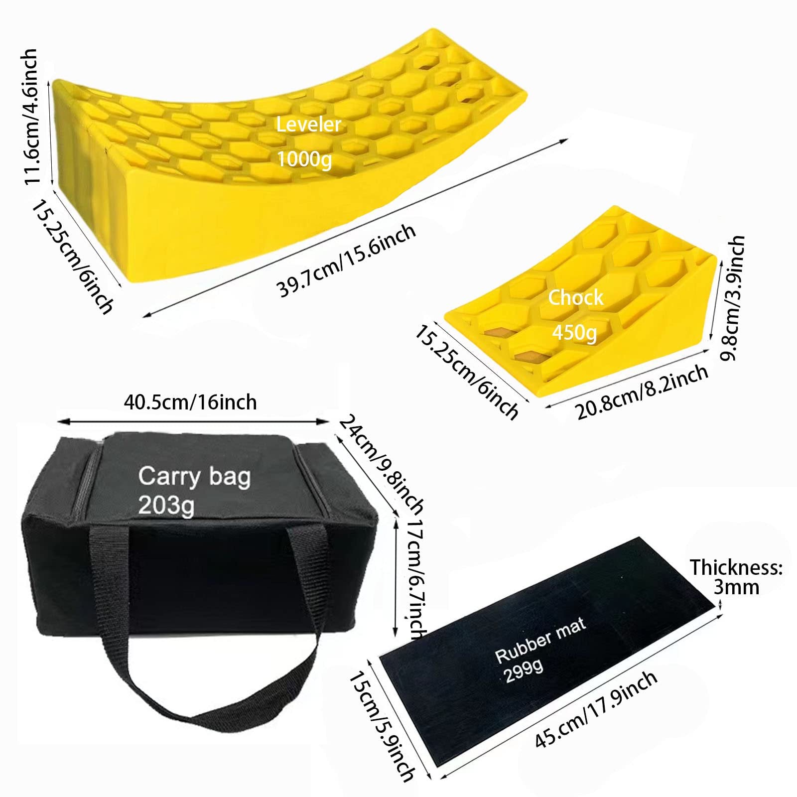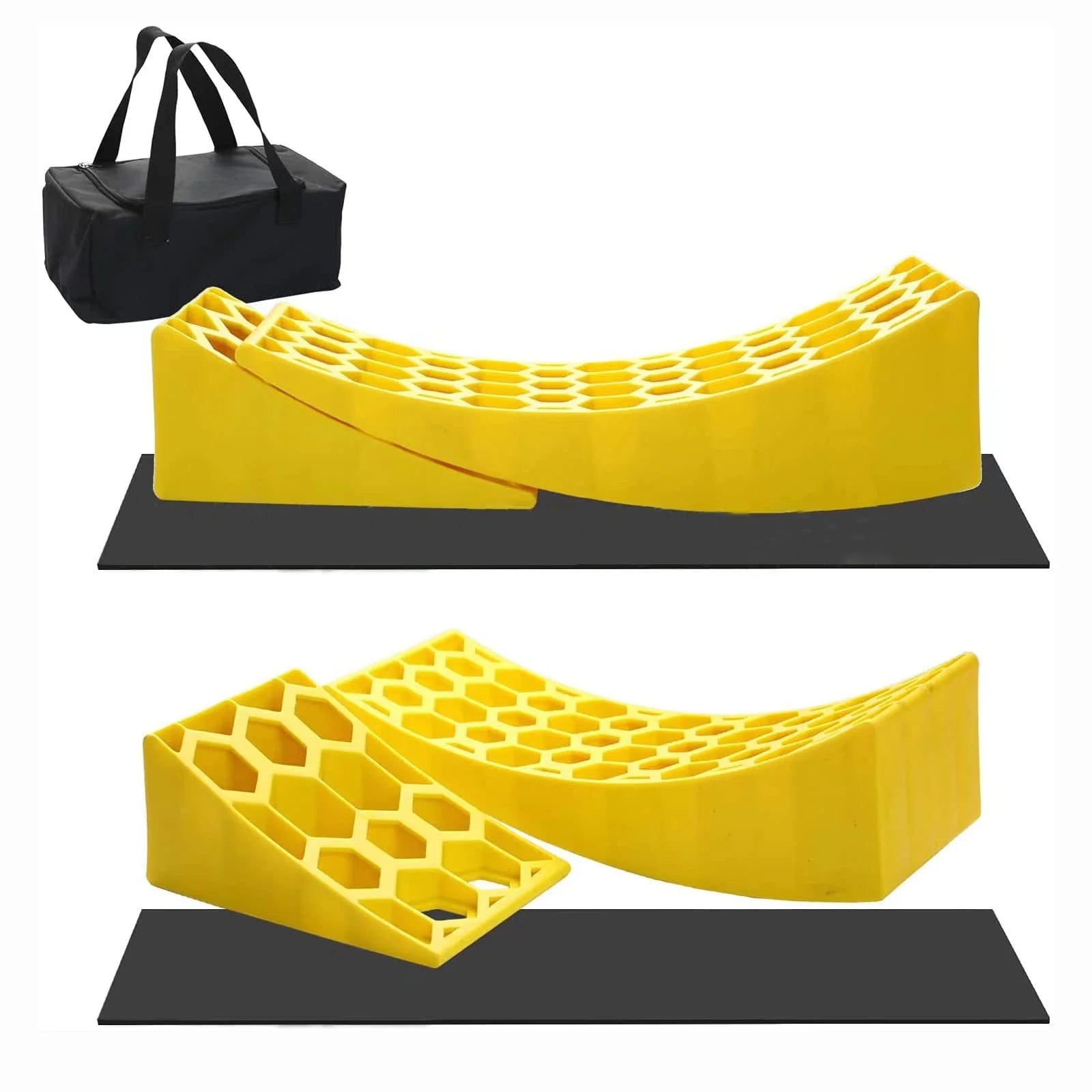 Upgrade your RV experience with the Walmart Camper Leveler 2 Pack, a robust leveling kit for dual axle trailers. It includes two durable curved levelers, two wheel chocks, and two rubber grip mats. This heavy-duty set supports loads up to 30,000 lbs and fits tires up to 32 inches, with an adjustment range from 1/2 to 4 inches for perfect leveling. Quick and easy to install, it's perfect for any RV or camper. Ensure safety and convenience on your next adventure. Shop now at Walmart!