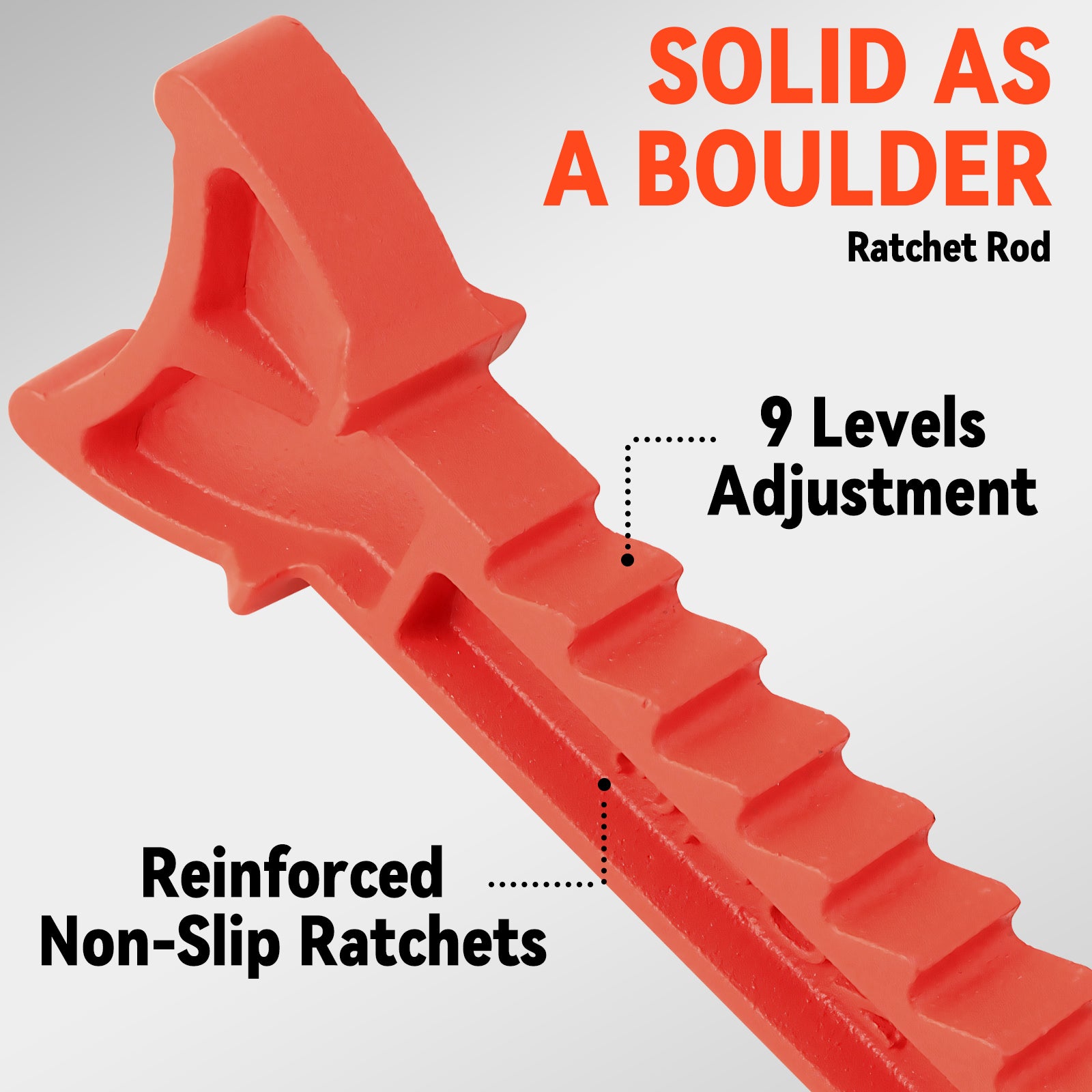 - Sawtooth Ratchet Bar: Made of ductile iron for precise height adjustments and secure engagement.