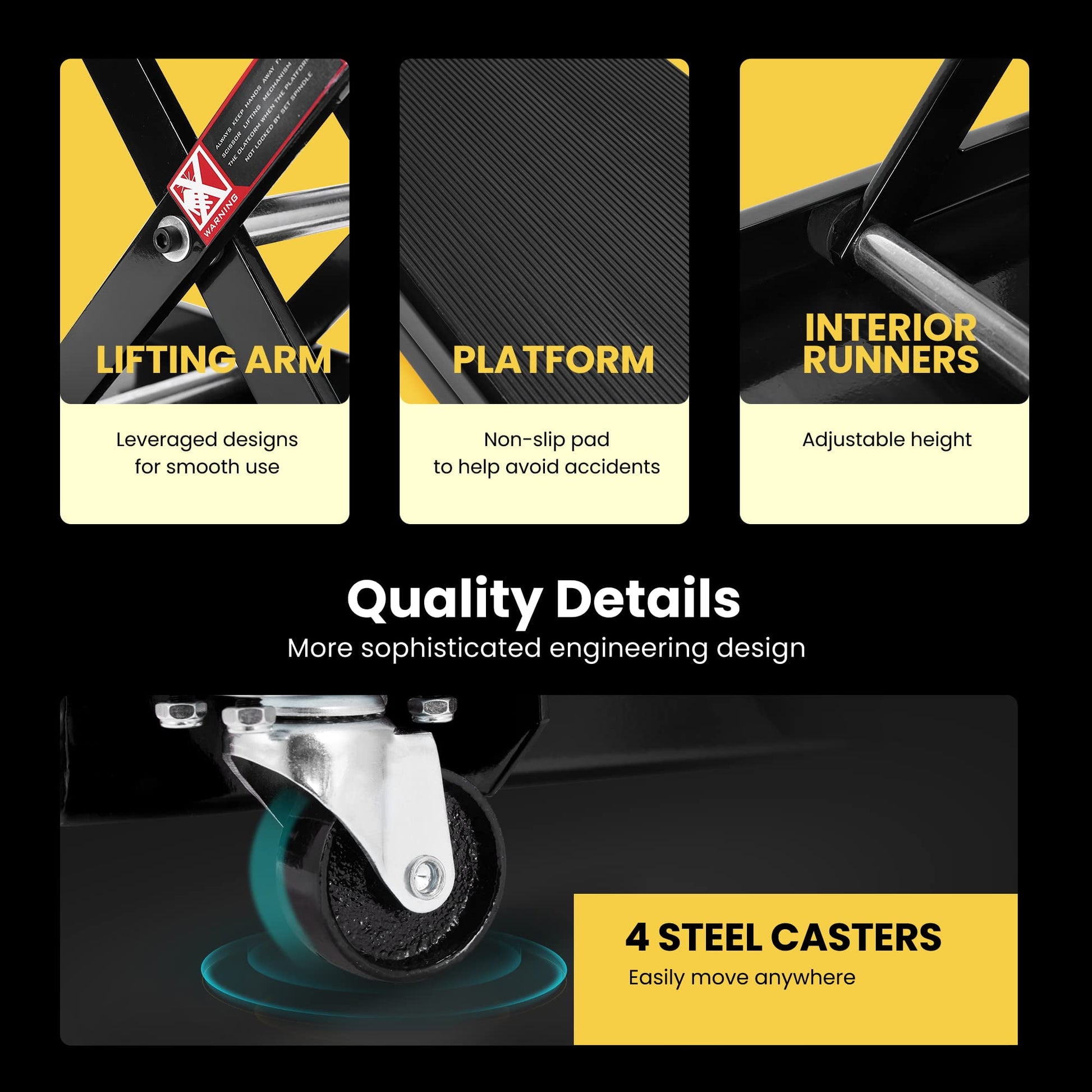 Lafati 1100 LBS Steel Motorcycle & ATV Scissor Lift Jack with Dolly - Heavy-Duty Bike Repair Stand