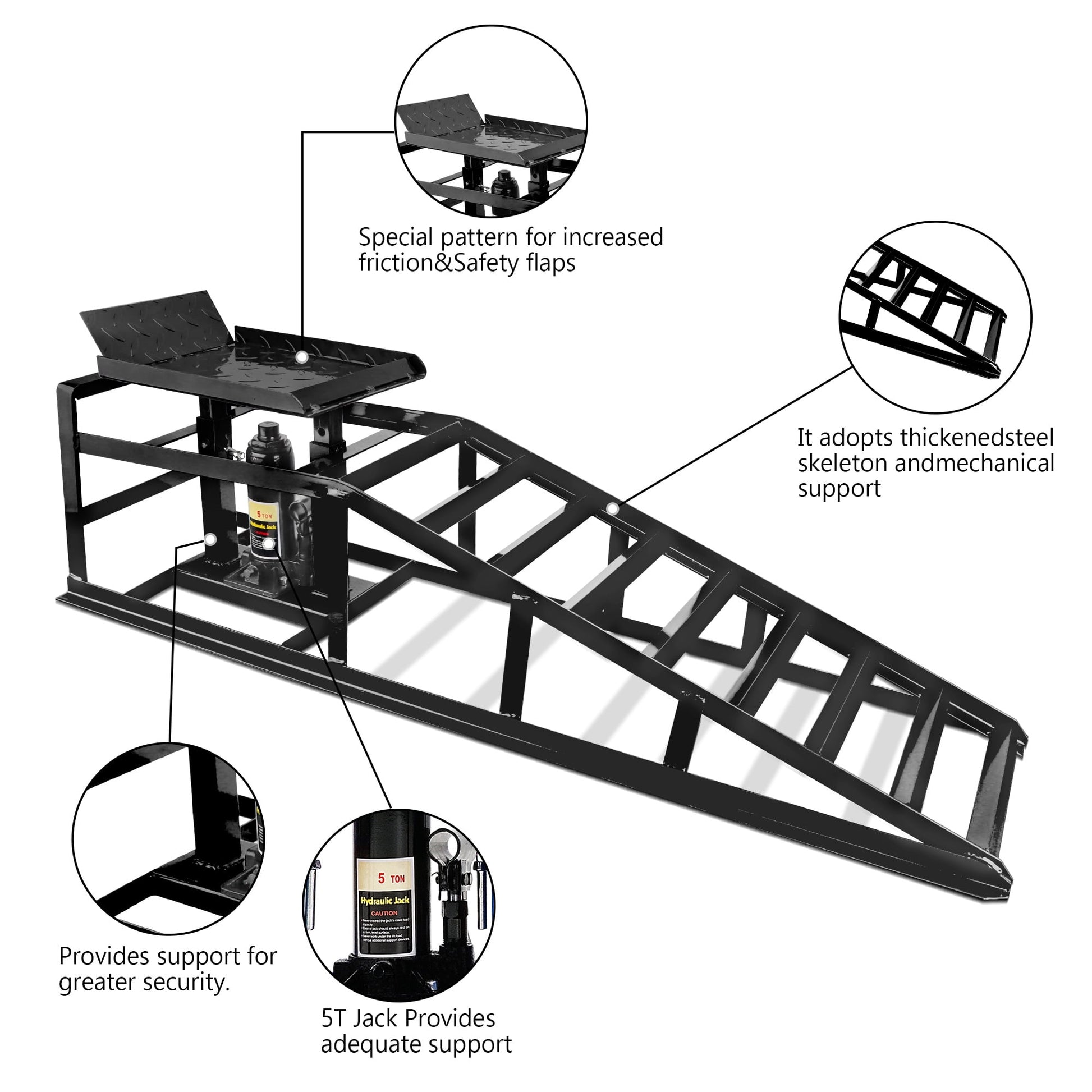 Lafati 2PCS 5T 10000lbs Hydraulic Car Ramps - Heavy Duty Steel Construction for Home Garage & Professional Use