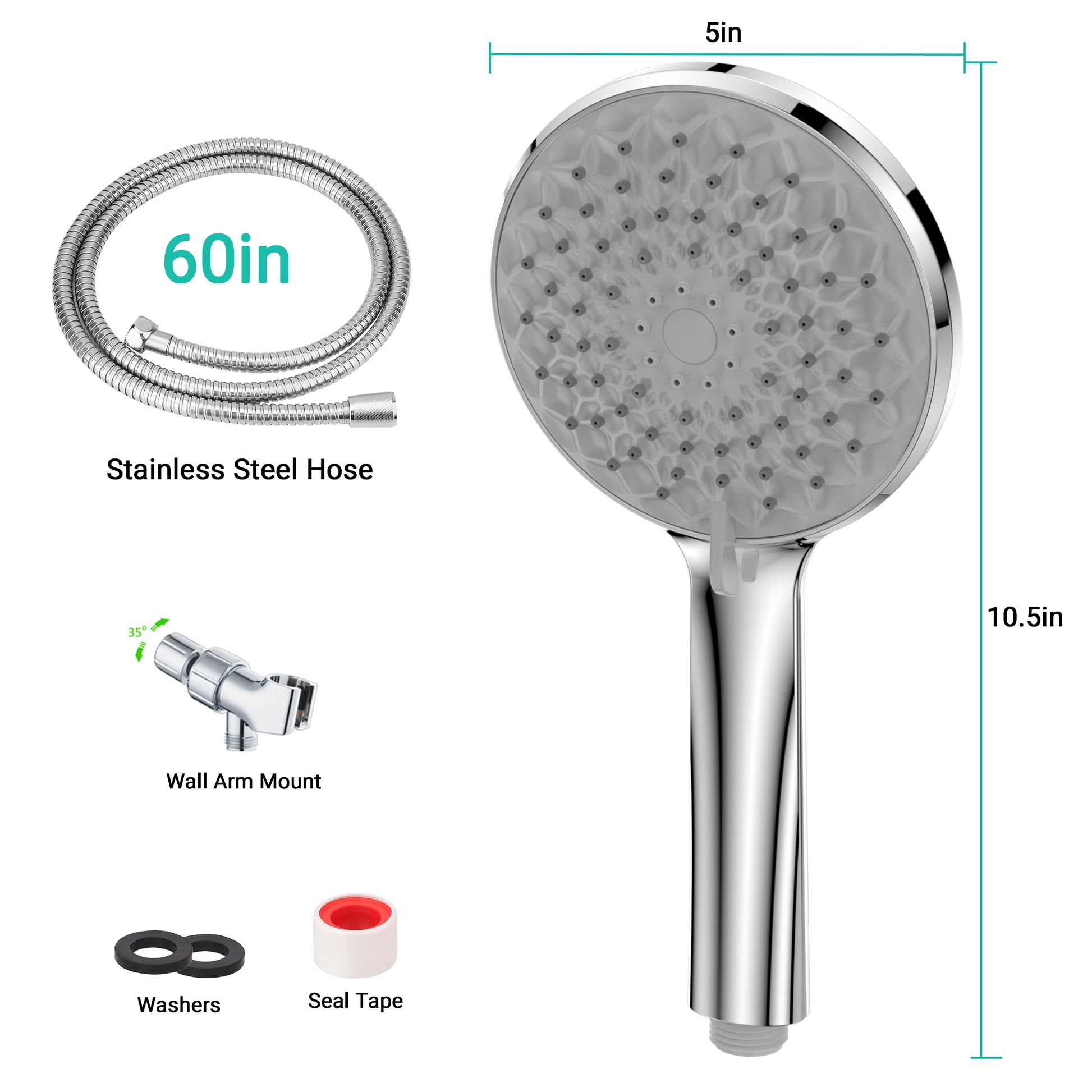 Lafati Handheld Shower Head Set with 6-Mode 60" Hose - Easy Install, Water-Saving Detachable Rain Shower for Ultimate Bathing Experience