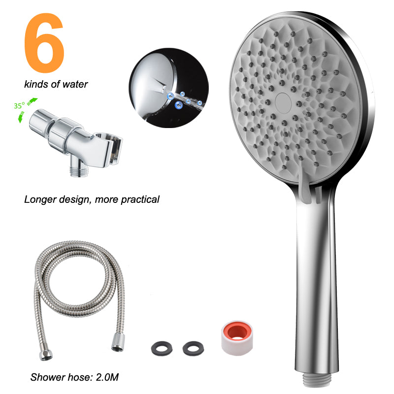 - Choose from six selectable spray settings to customize your shower experience. From invigorating massages to gentle mists, easily adjust the mode with a simple rotation of the handle. Includes a water-saving pause function for efficiency.