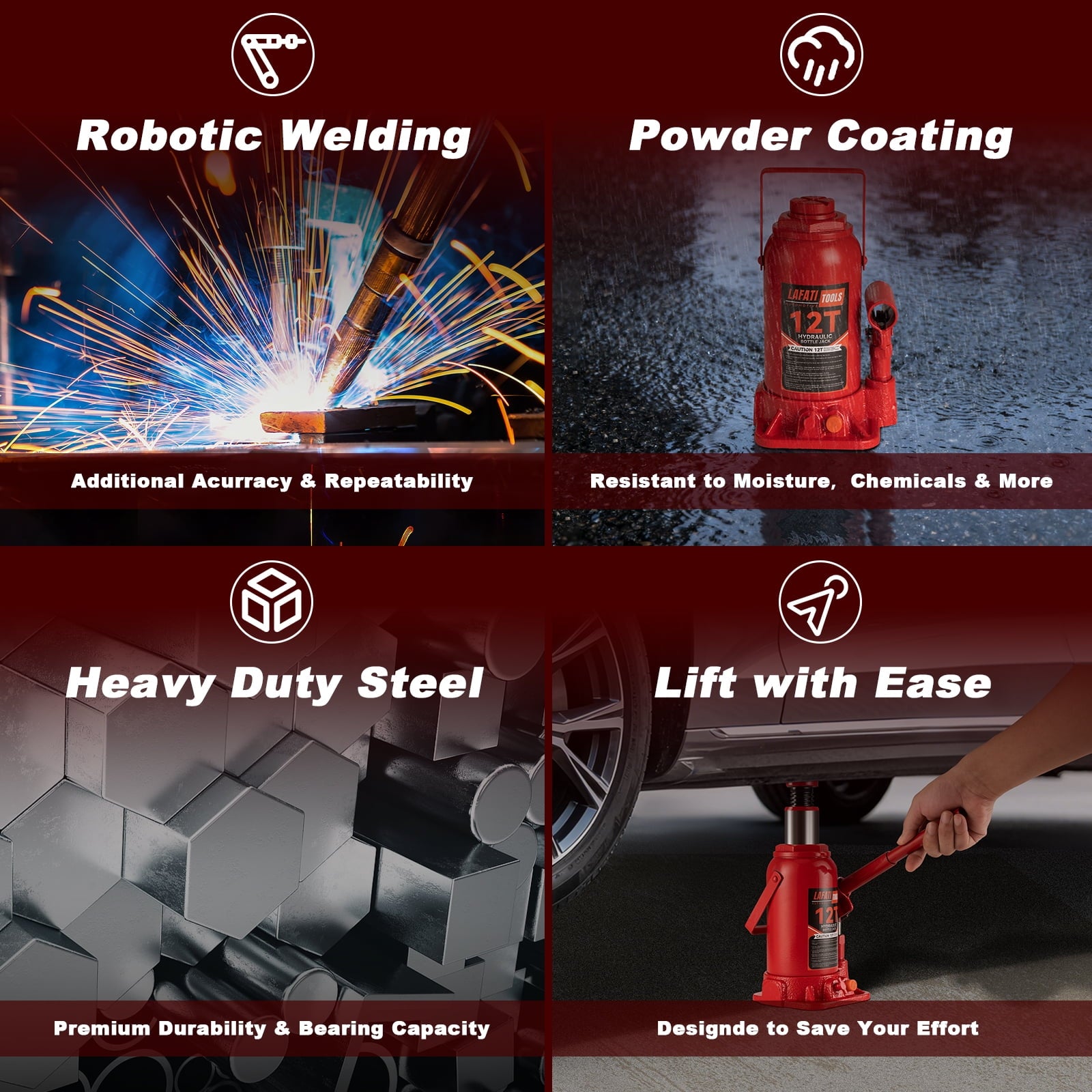 Lafati Hydraulic Welded Bottle Jack, 12 Ton (24,000 lb) Capacity, Red