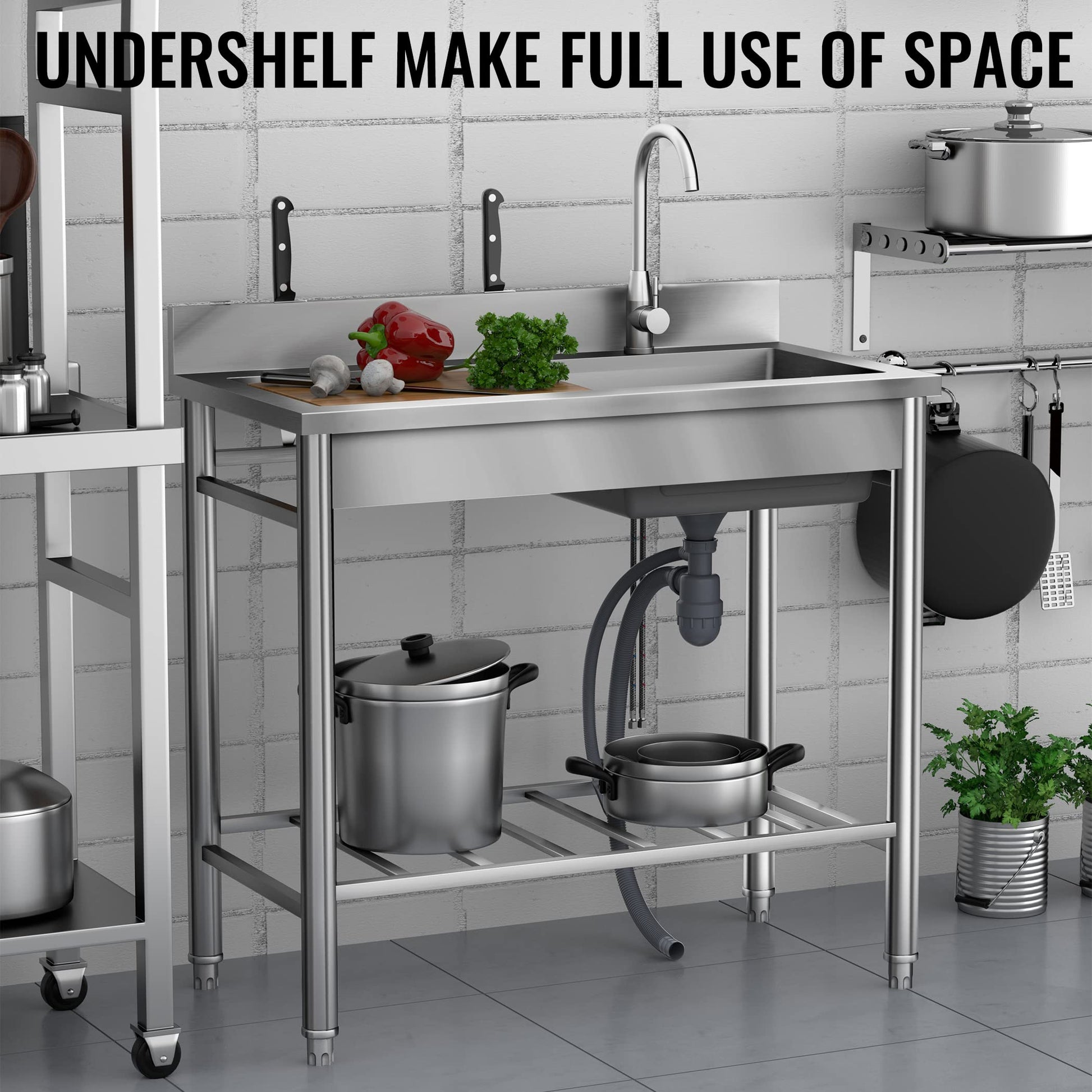 Elevate your kitchen's functionality and style with the LAFATI Stainless Steel Utility Sink. Designed for both commercial and home use, this 304 SUS free-standing sink combines practicality with durability. The spacious single bowl, deep enough to handle large dishes and prevent water splash, is complemented by a large work station for seamless food preparation.