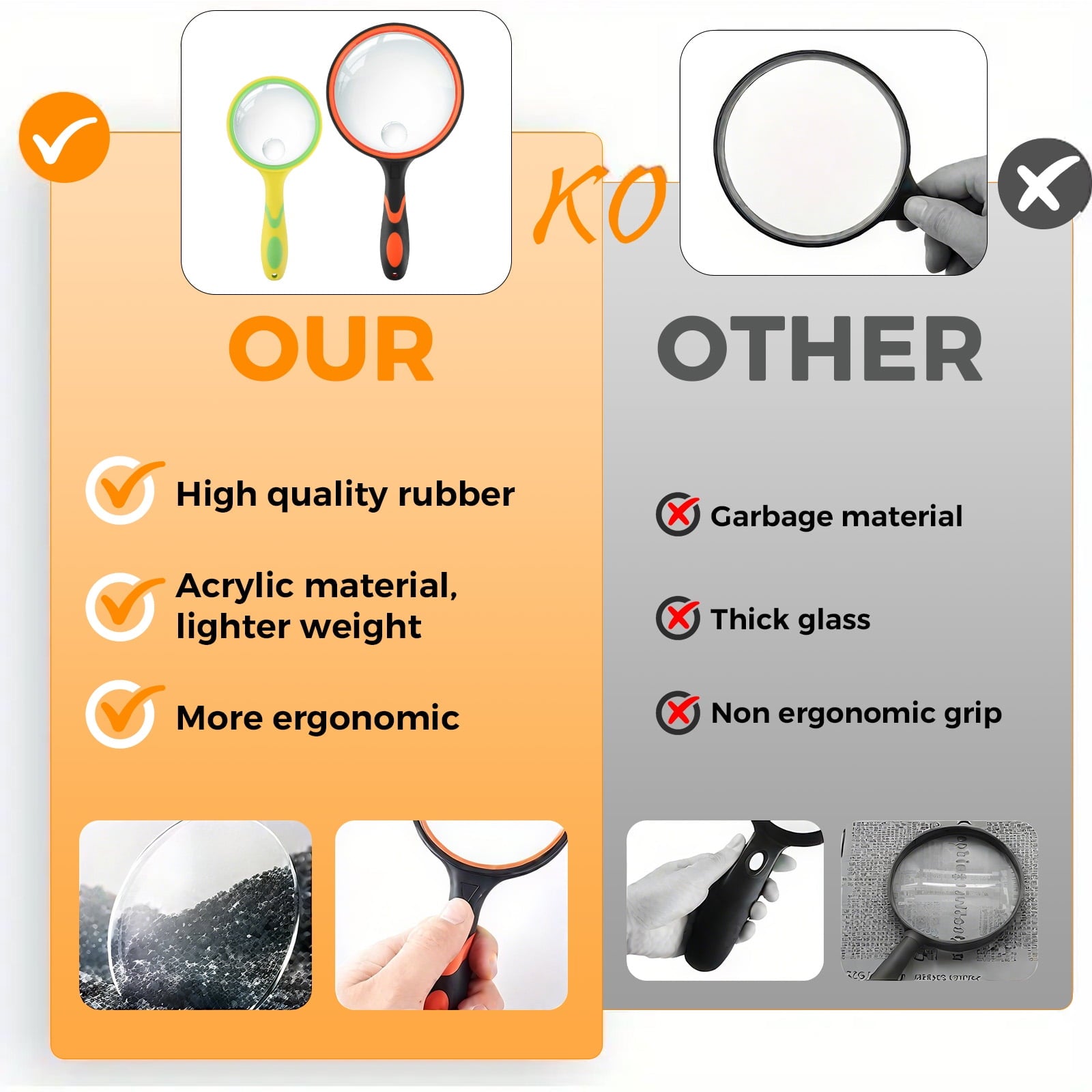 - With soft rubber handle, the premium 3x magnifers are comfortable to hold and use. Lightweight and compact, perfect for daily use.