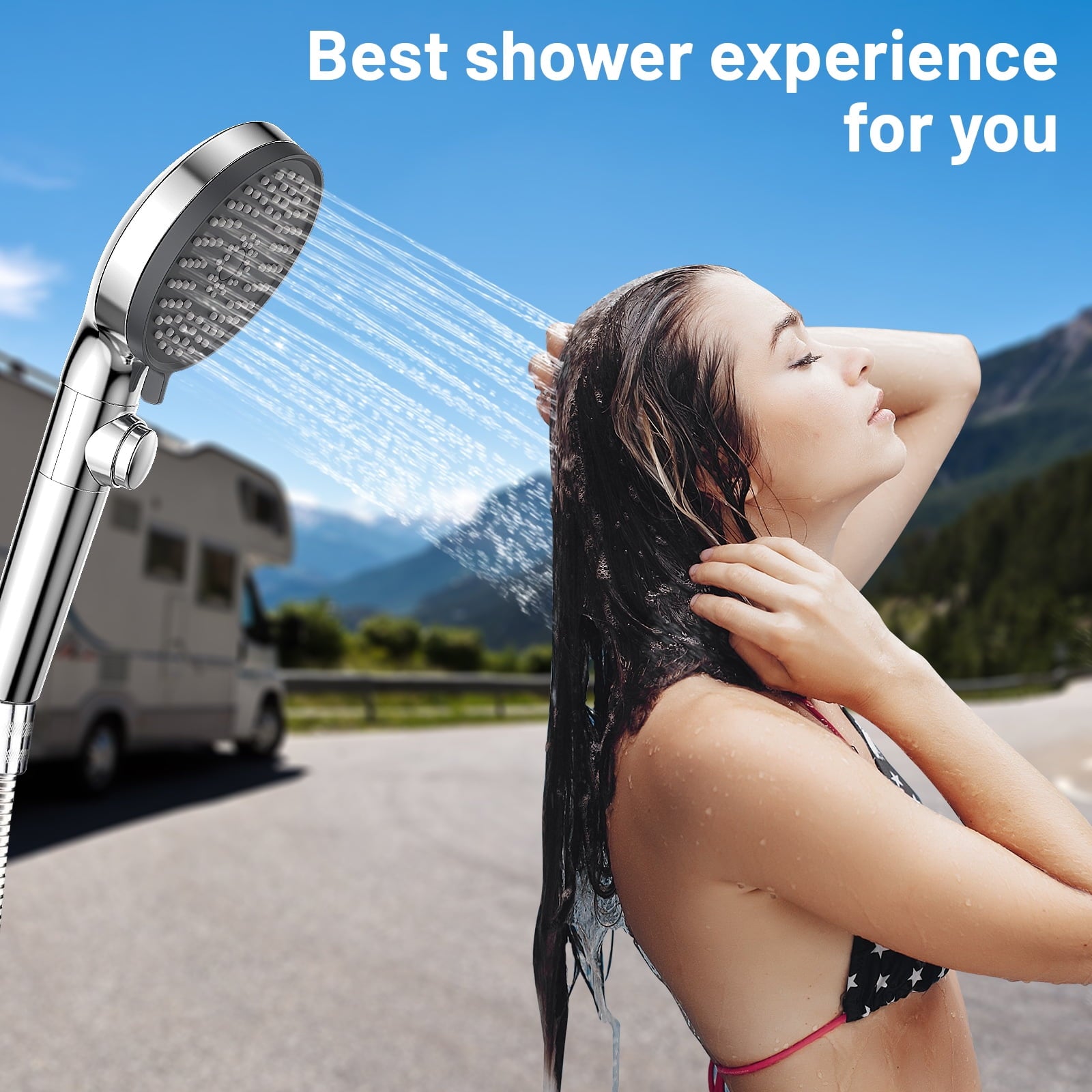 - High pressure handheld RV Shower head with Hose and on off switch has 5 Spray modes, including Rain, Massage, Rain+Massage, Pause Mode and Powerful Wash. The outdoor shower head for RV, Camper, Travel Trailer, Motorhome and boat.