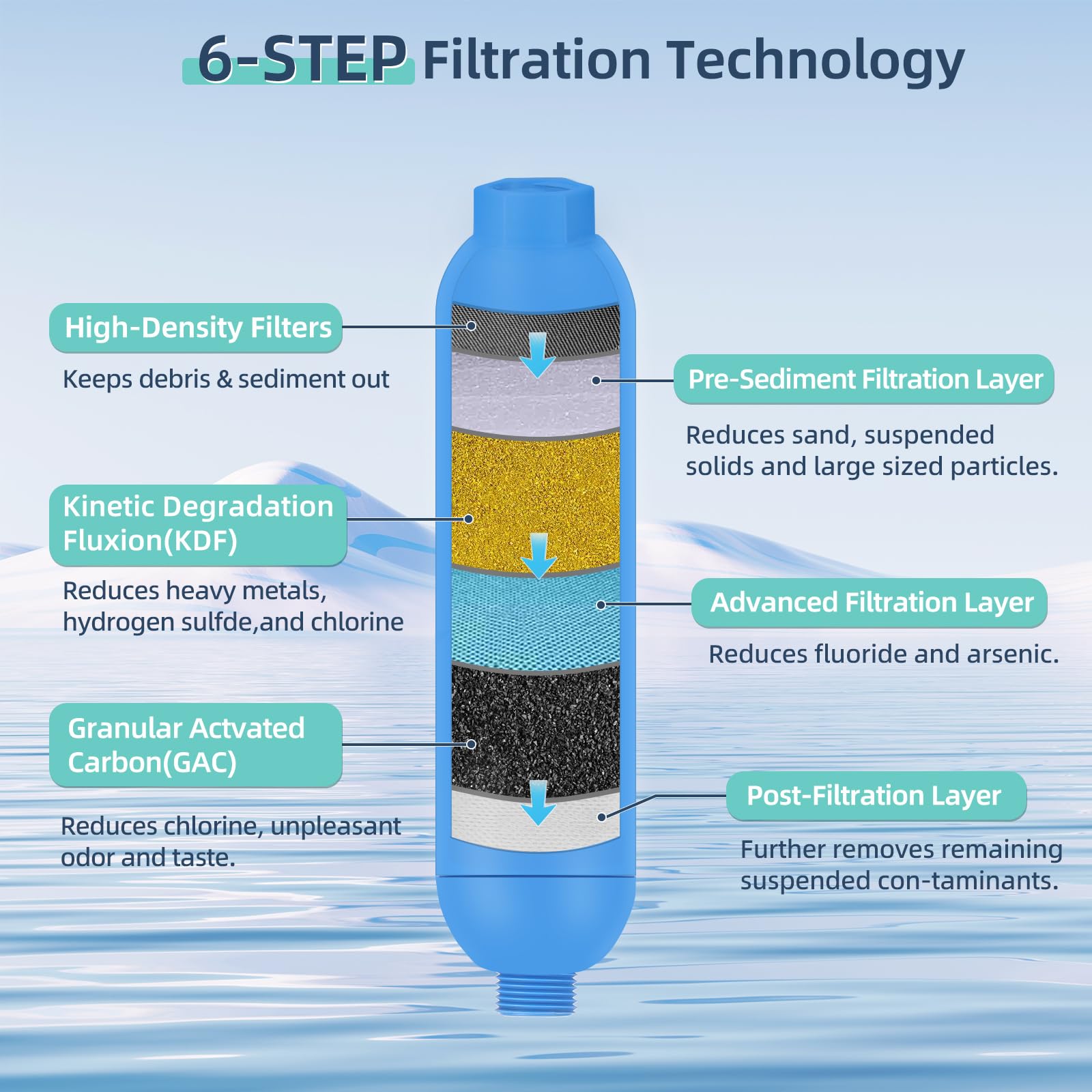 Premium Filter Material:- Lead-free, BPA-free, uses selected GAC granular activated carbon and Kinetic Degradation Flux (KDF), It can effectively reduce fluoride to protect your teeth, bones, and digestive system.