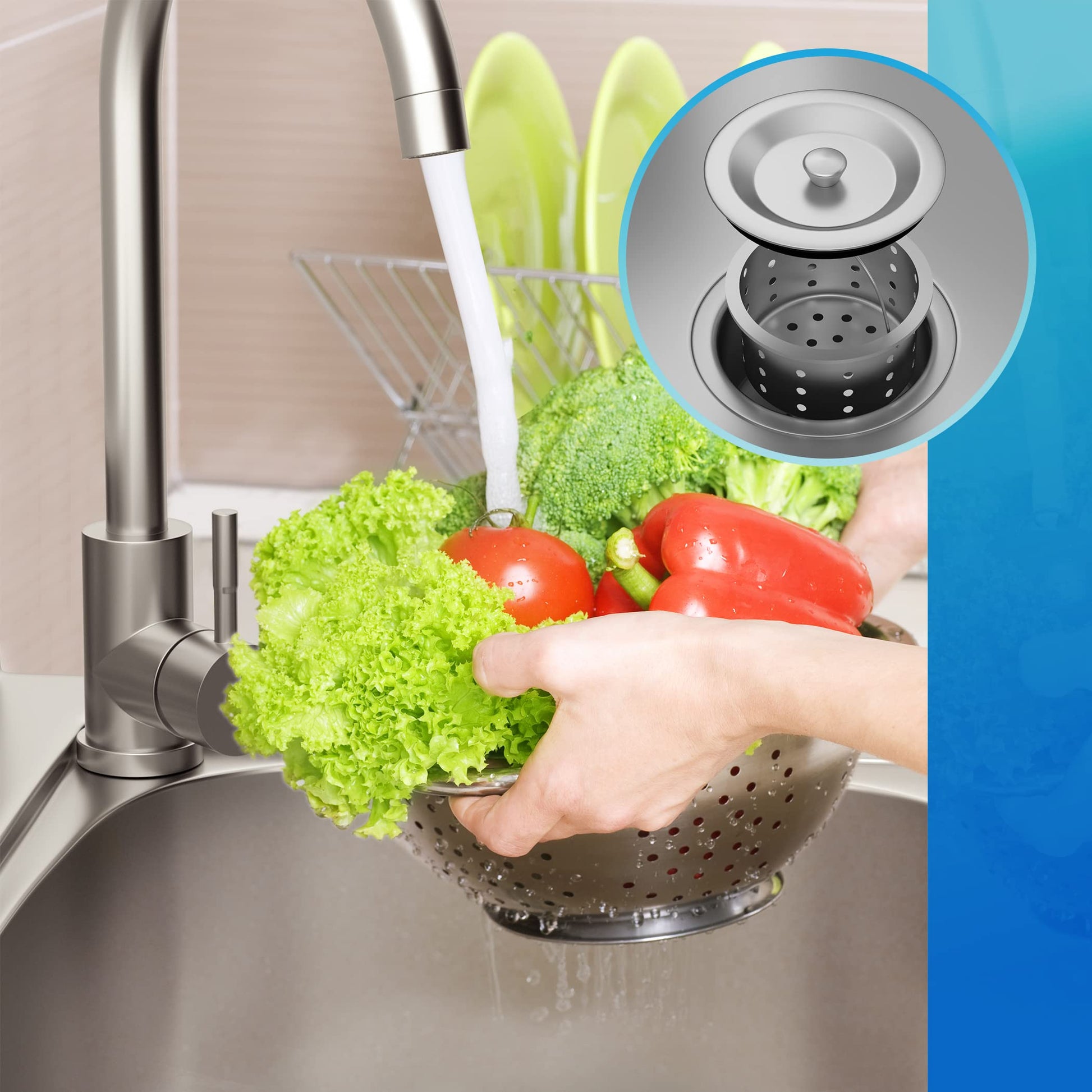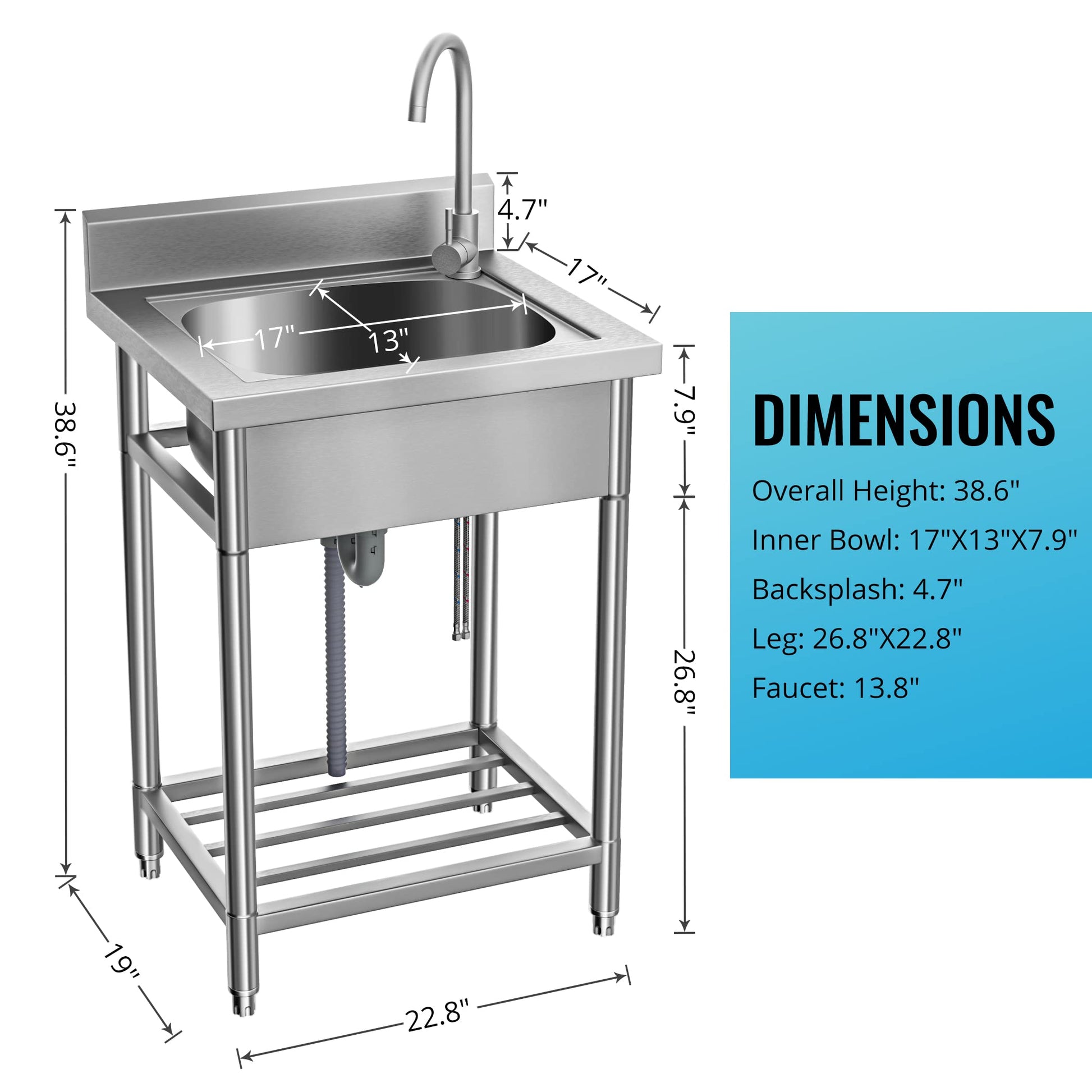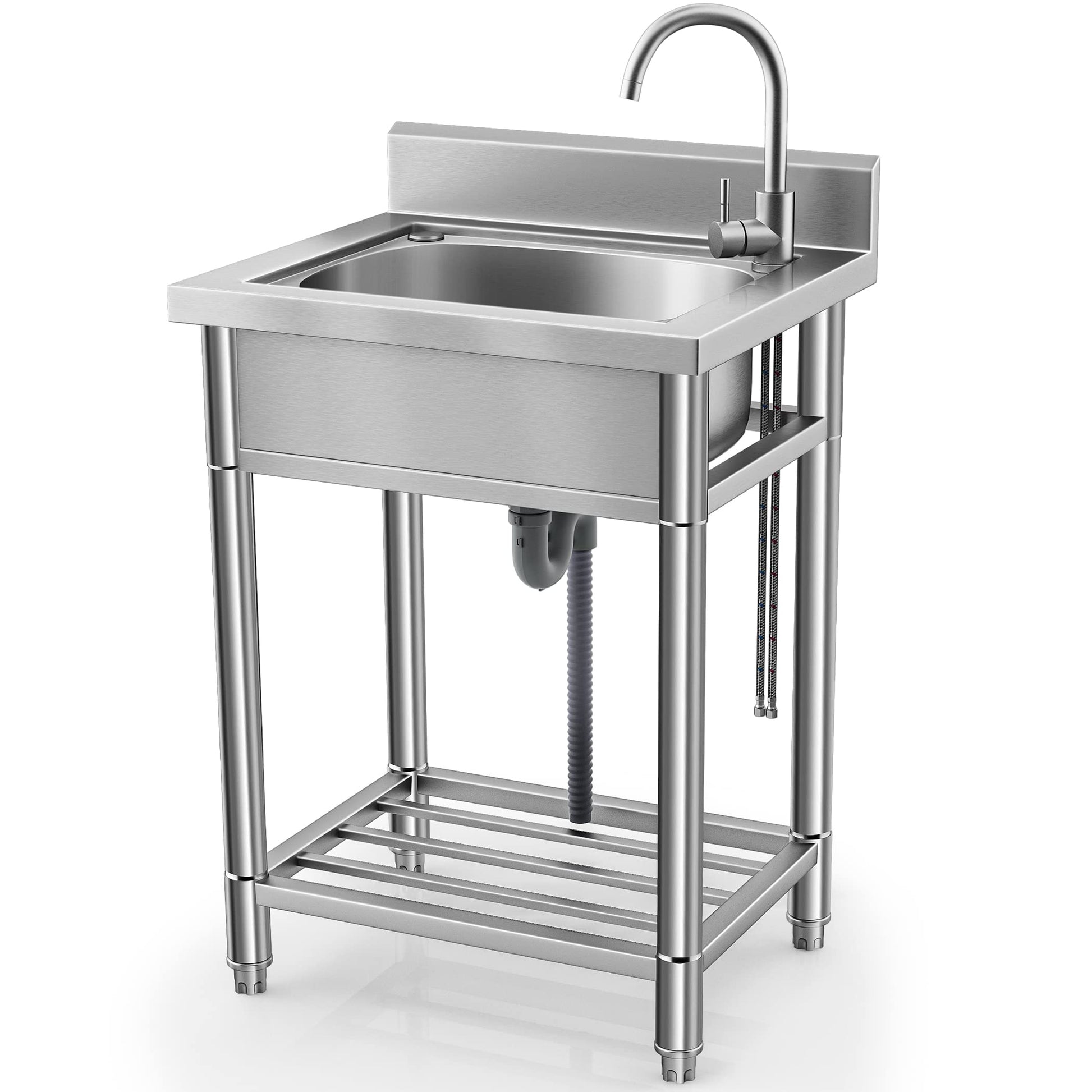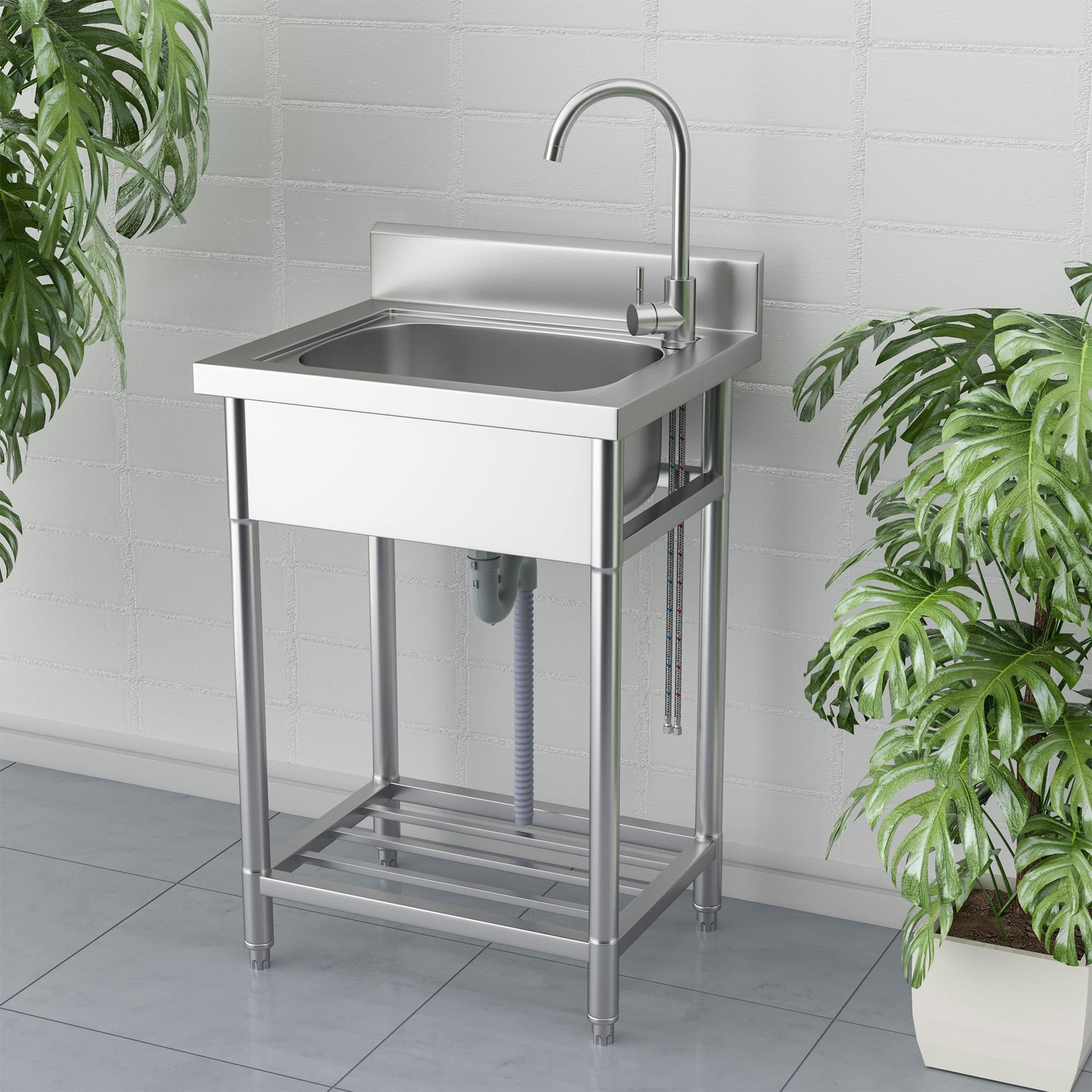 Upgrade your space with this versatile Utility Sink. Made with NSF certified 304 stainless steel, this sink is durable, stable, and rust-proof. It comes complete with hot and cold water inlet pipes, a gooseneck faucet, and sink accessories including a drainer basket and drain pipes. The sink is easy to install and can be used in various settings such as the kitchen, bathroom, farm, garage, and laundry room.