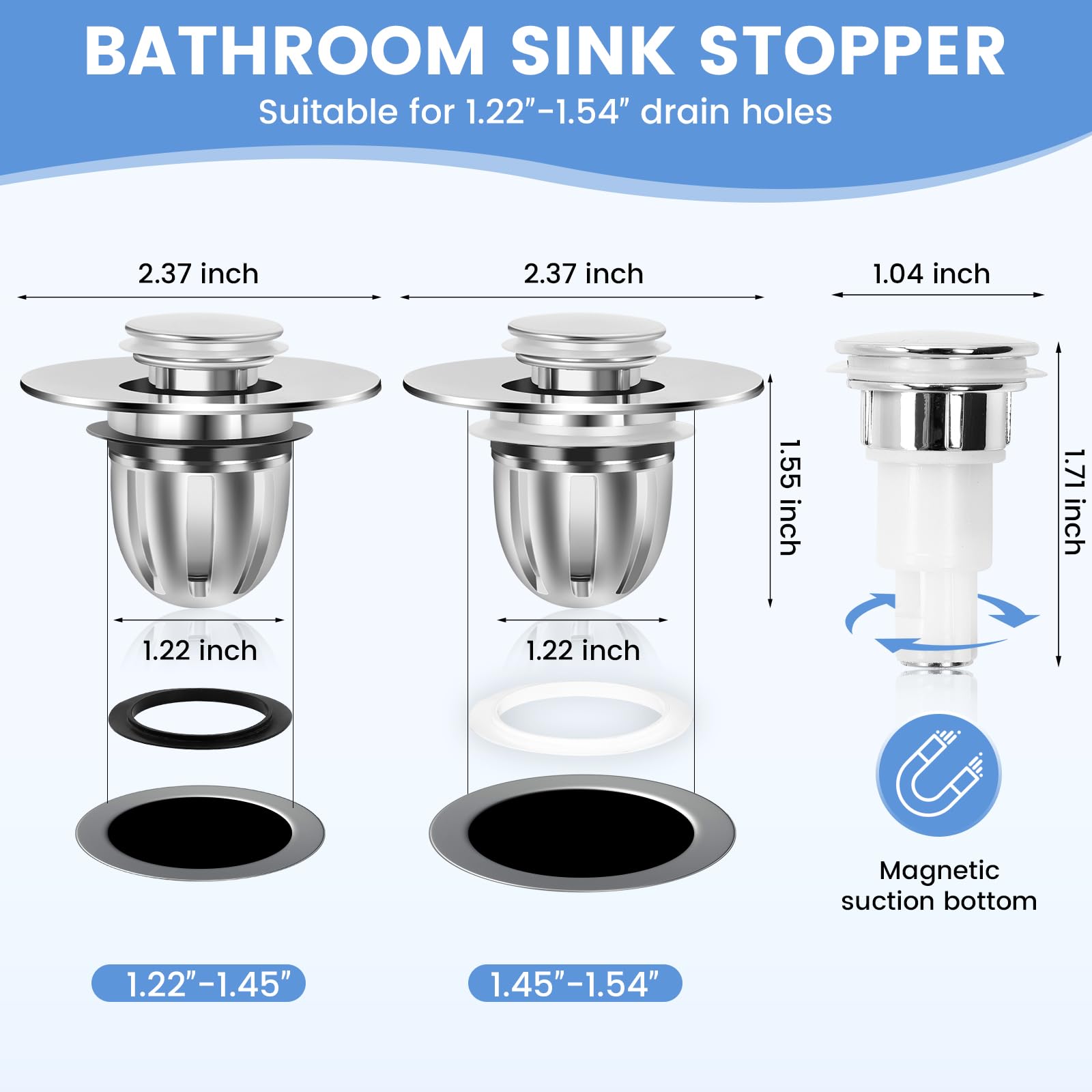 - Designed to fit a wide range of sink and bathtub sizes (1.22" to 1.54" inner diameter), our basin pop-up drain hair catcher ensures a perfect fit for nearly all washbasin, bathtub, and shower tub drains, making it the best choice for 99% of homes.