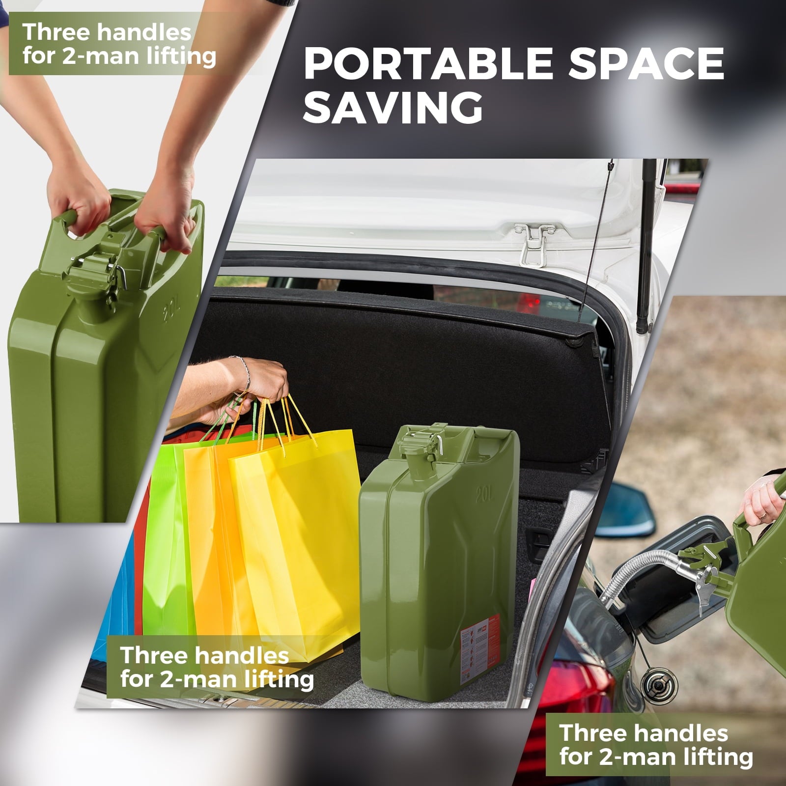 - Perfect for Fuel Storage: Ideal for storing and transporting fuel, diesel, and other liquids.Capacity: 20L (5 Gallon), a perfect size for emergency backup or outdoor activities.Color: Green.