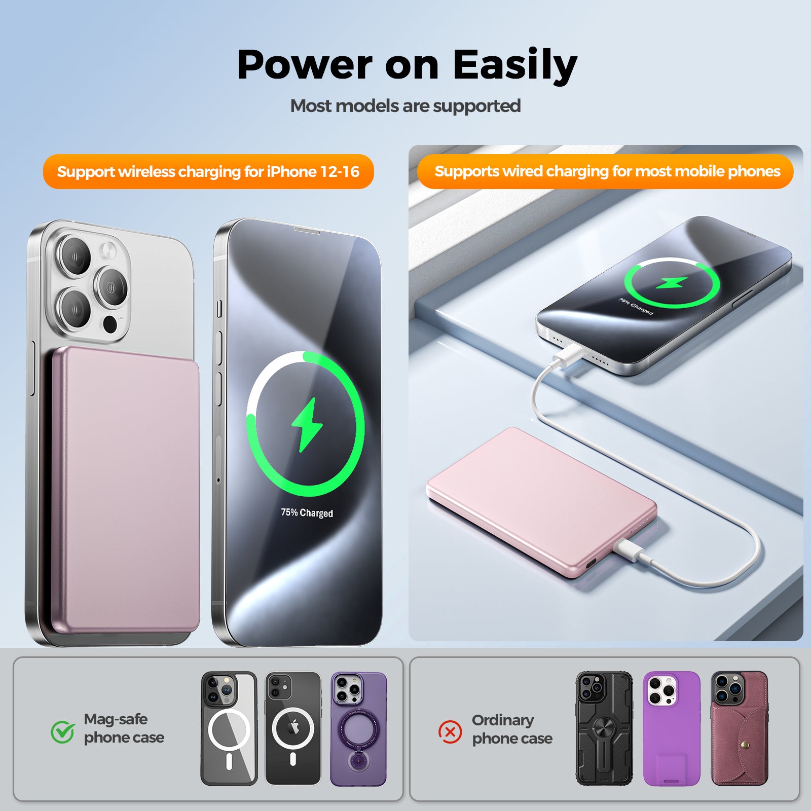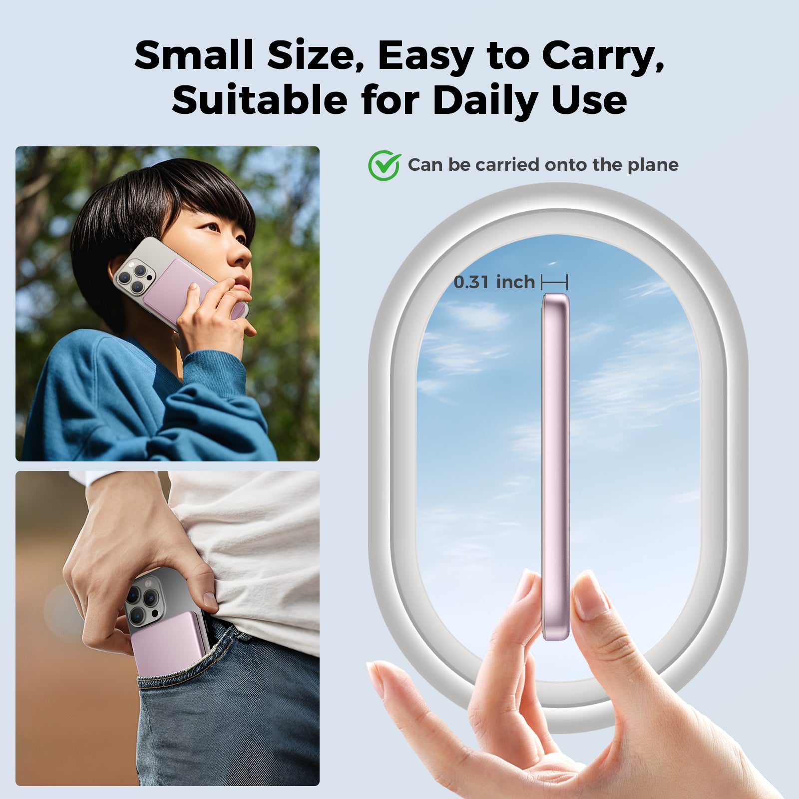 Magnetic Portable Charger, Ultra Slim 5,000mAh Wireless Portable Charger with USB-C Cable, Fast Charging WirelessMagsafe-Compatible Charger for iPhone 16/15/14/13/12—Pink